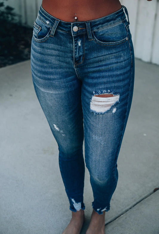 Europe and the United States cross-border autumn and winter new women's holes elastic high waist slim pants jeans