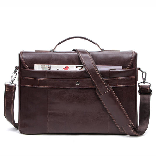 Black Angel can be installed 15.4 inch computer leather men's business briefcase Europe and the United States trend men's bag cross-border generation