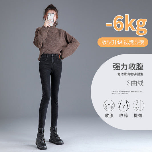 High waist jeans female 2021 spring and autumn new Korean version of the slim slim, wearing a small foot pencil pants