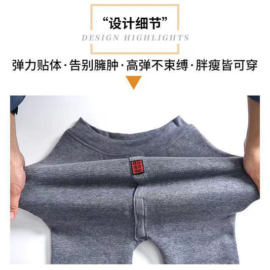 Men's warm pants middle-aged plus velvet pants pants velvet pants high elastic pants single piece men's net warm velves