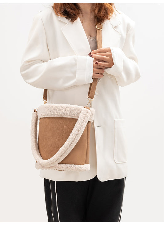 Women's Autumn And Winter Plush PU Leather Bucket Bag
