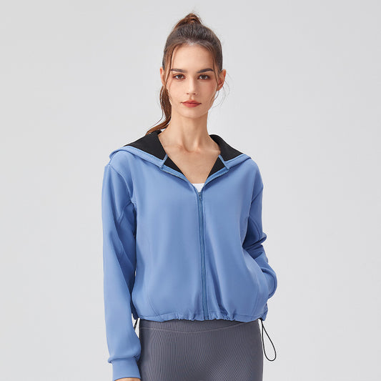 Women's Autumn And Winter Thickening Yoga Jacket Loose Hooded Warm Zipper Running Clothes