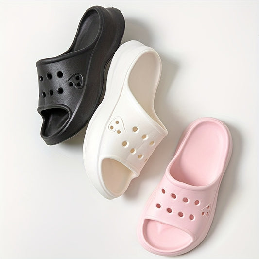 Women's Solid Coor Slides, Casual Open Toe Summer Shoes, Comfortable Hollow Out Design Shoes