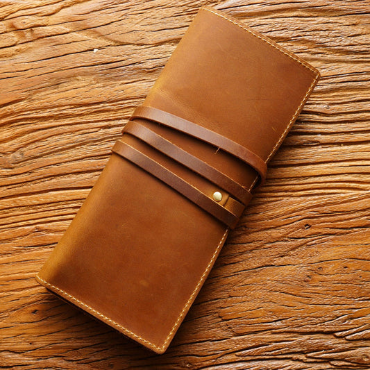 Crazy Horse Cowhide Pencil Bag Simple Literature And Art