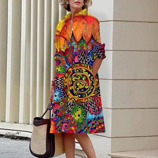 Abstract Pattern 3D Digital Printing Women's Shirt Dress