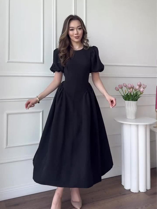 In offertaRetro Short Sleeve Puff Sleeve Dress