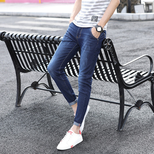 2021 spring new youth men's trend men's stretch men's jeans small foot casual pants men's trousers trousers