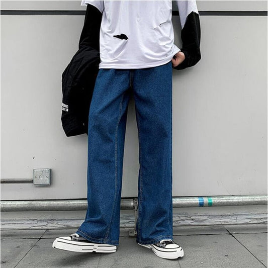 Spring Retro Denim Pants Men's Korean Straight Loose Fit Youth Versatile Wide Leg Casual Jeans