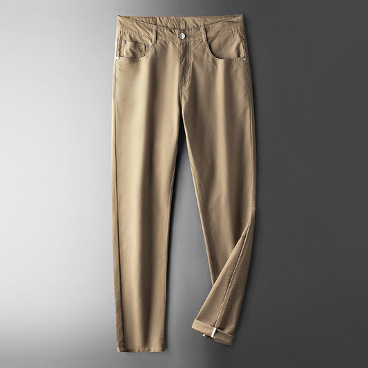 2021 spring and summer new thin twill cotton casual pants men's light business fashion slim small straight tube trousers male