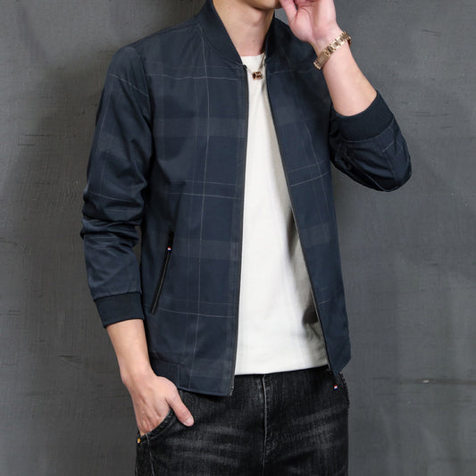 Men's jacket 2021 autumn new simple lattice men's clothing middle Youth loose casual baseball jacket jacket male