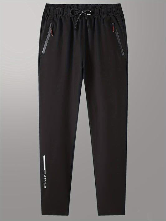 Men's Letters Print Pants With Zipper Pockets, Casual Elastic Waist Drawstring Trousers For Outdoor Activities Gift