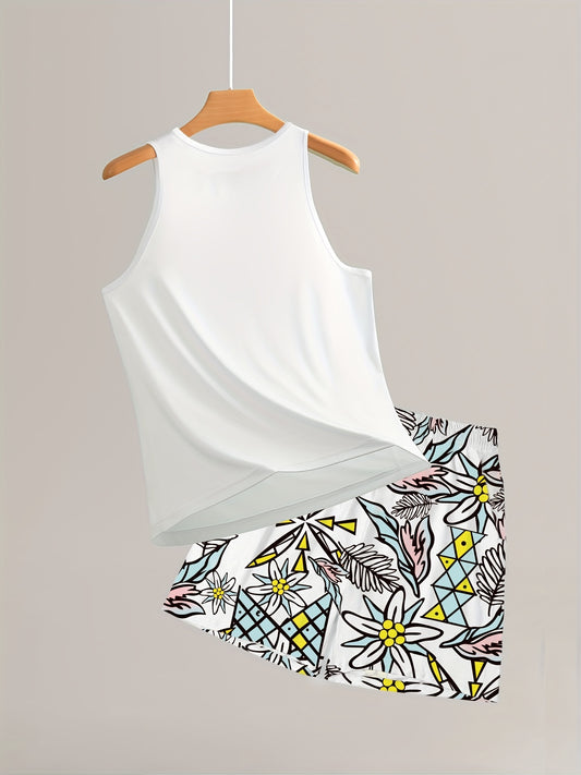 Men's Coconut Trees Graphic Print Tank Top & Shorts Set For Summer Outdoor Sports