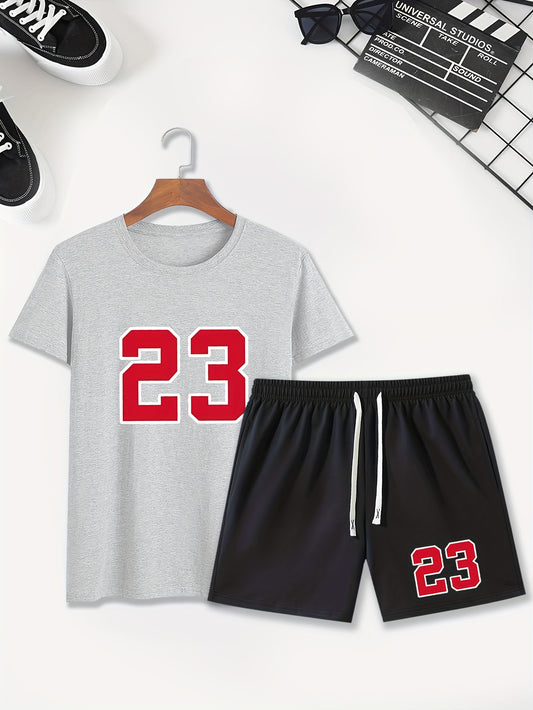 23 Stampa Uomo 2Pcs Trendy Outfits Casual Crew Neck Manica Corta T-Shirt & Drawstring Shorts Set Per Primavera Estate Workout Abbigliamento Uomo Stampa