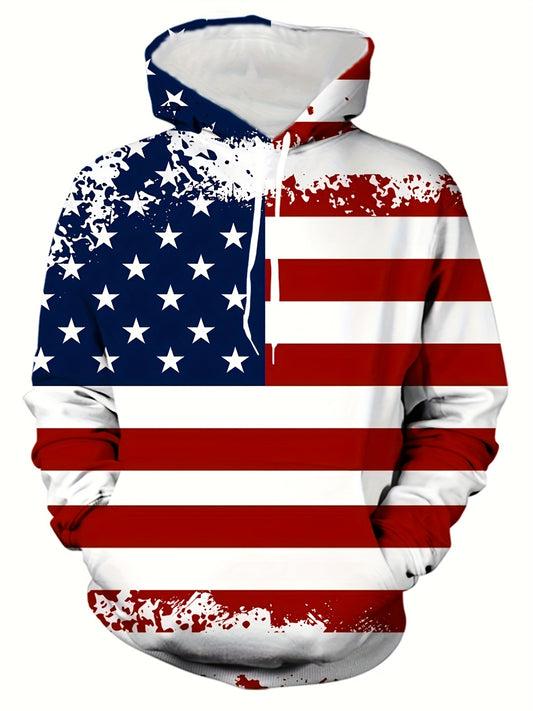 2pcs Set di pigiami da uomo con fantasia della bandiera americana stampata in 3D, con cappuccio e pantaloni con coulisse a manica lunga, abbigliamento da uomo alla moda