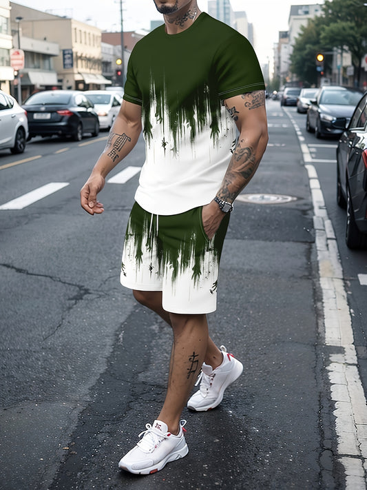Stampa Con Motivo 3D, 2 Pezzi Di Abiti Da Uomo, T-shirt Casual Girocollo A Maniche Corte T-shirt E Pantaloncini Con Coulisse Per L'estate, Abbigliamento Da Uomo Loungewear Allenamento Per Le Vacanze