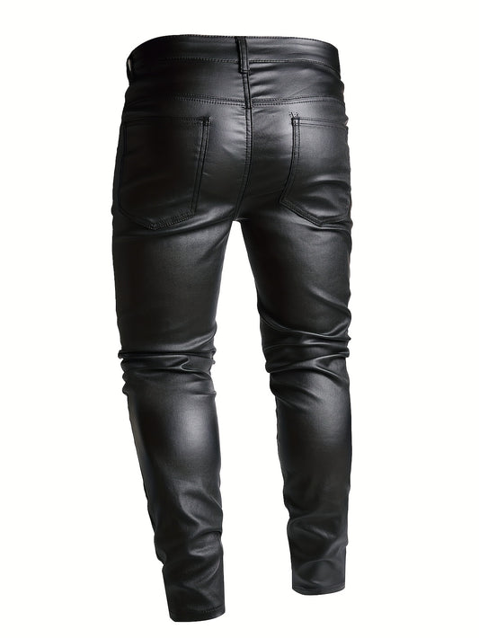 Men's Casual High Stretch Jeans, Chic Street Style Coated Skinny Jeans