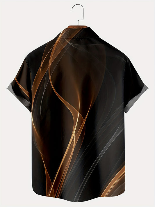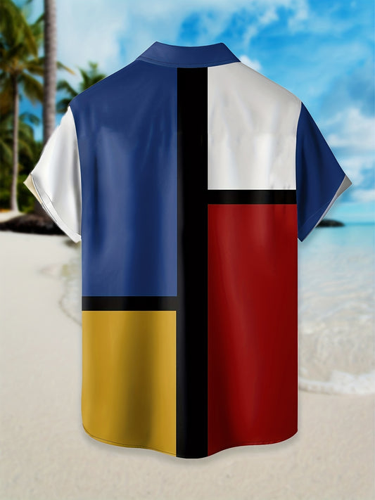 Plus Size Men's Hawaiian Shirts, Colorblock Short Sleeve Comfy Tops For Summer