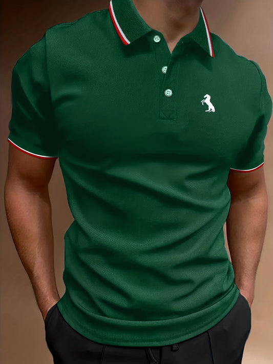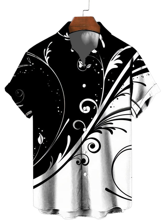 Black Horse Print Men's Casual Comfy Custom Fit Tipped Cuffs Shirt