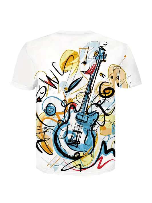 Stylish Guitar Pattern Print Men's Comfy T-shirt, Graphic Tee Men's Summer Clothes, Men's Outfits