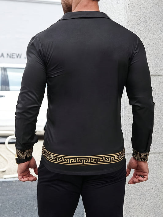Retro Ethnic Style Print Men's Long Sleeve Button Up Shirt, Men's Spring Fall Lapel Shirt