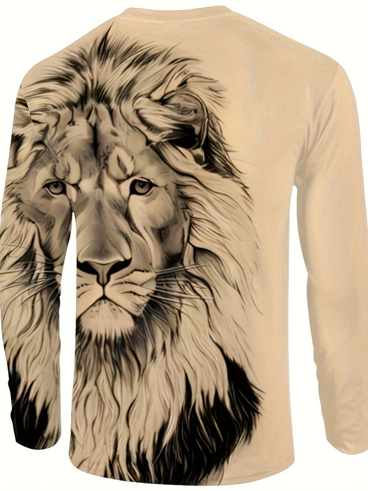 Lion Head Anime 3D Print Men's Creative Top, Men's Trendy Long Sleeve Crew Neck T-shirt, Spring Fall