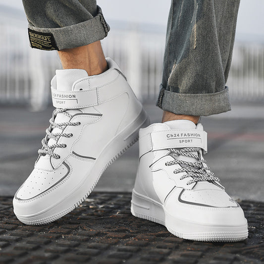 Shoes male 2021 spring high-top sports shoes men's casual shoes reflective small white shoes men's shoes SkateShoes
