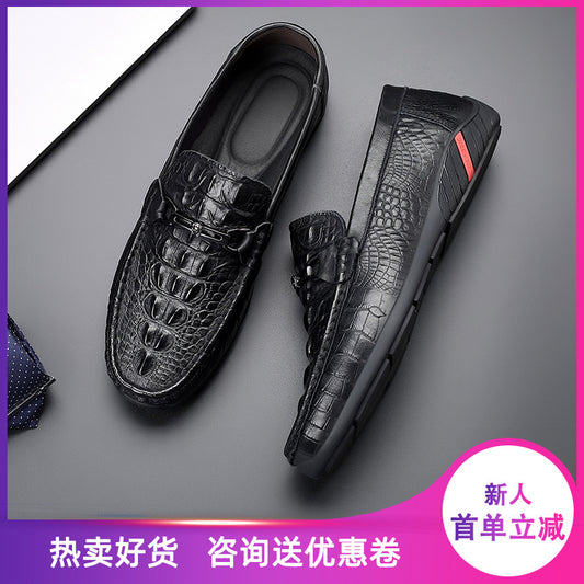 Men's shoes leather new crocodile men's peas shoes, leather breathable business, casual leather shoes men