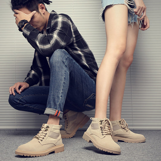 Spring new breathable Martin boots trend tooling casual British short boots high to help large size men's shoes couple military boots