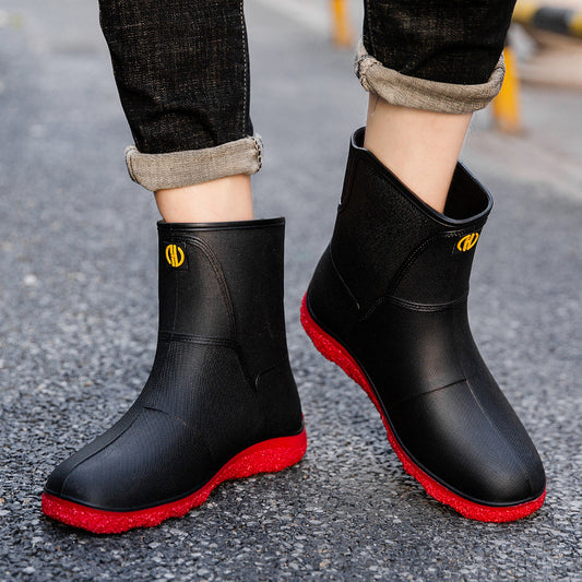 New rain shoes men's wear water shoes anti-skid waterproof rain boots work space thick bottom low help shoes wear rubber shoes