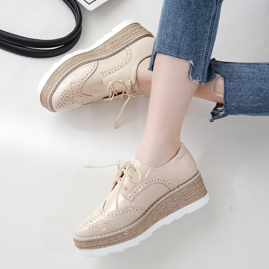 Women's British Style Patent Leather Thick-soled Small Leather Shoes