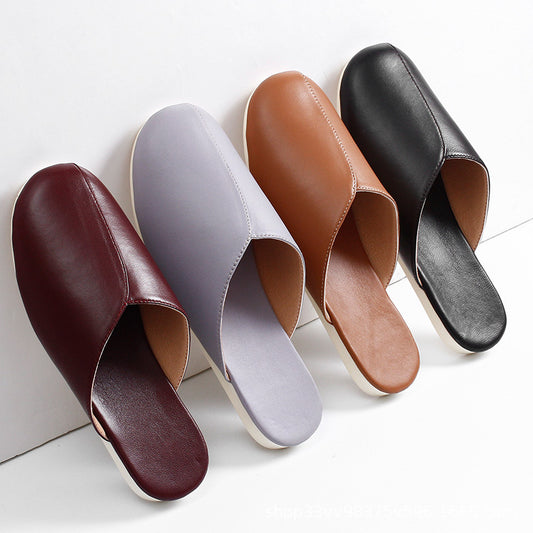 Four seasons leather home slippers indoor waterproof and slip-slip home sheepskin Baotou men and women floor slippers manufacturers wholesale