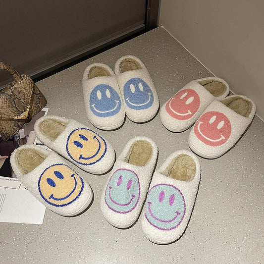 new cotton slippers women's home plush warm home indoor non-slip thick bottom smiley hairy autumn and winter
