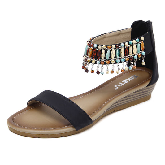 The new 2021 national wind sandbag female cross-state foreign trade bead large size slope and retro Roman sandals one generation