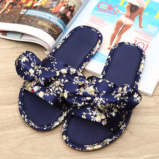 Linen slippers female summer home interior Japanese spring air conditioning anti-slip floor thick bottom four seasons 2019 new