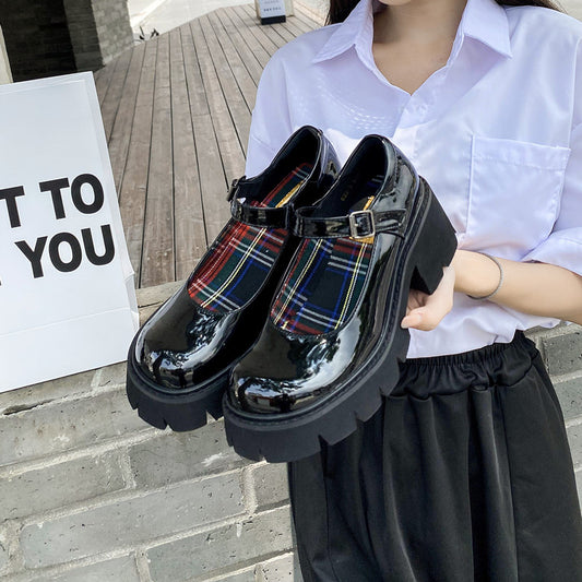 2021 new thick bottom Mary Zhen Shoes women's high heels Japanese JK British wind round head uniform thick with single shoes women's tide