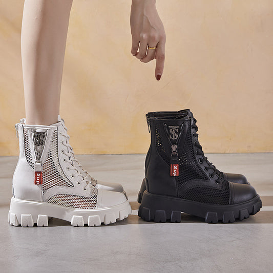2021 spring and summer new net Martin boots women's thick bottom increased zipper women's boots hollow Martin boots female