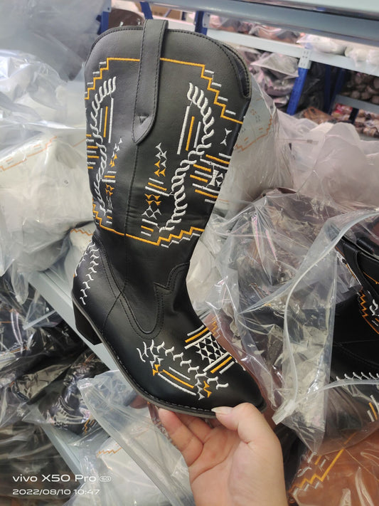 2022 new women's Martin shoes short boots Western mid-tube pointed embroidered retro leather boots