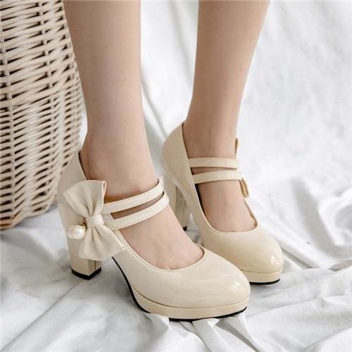 Sweet Butterfly-Knot Women Pumps Round Toe Square High Heels