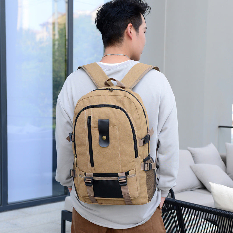 Korean men's backpack fashion trend casual canvas backpack high school college student bag computer travel bag