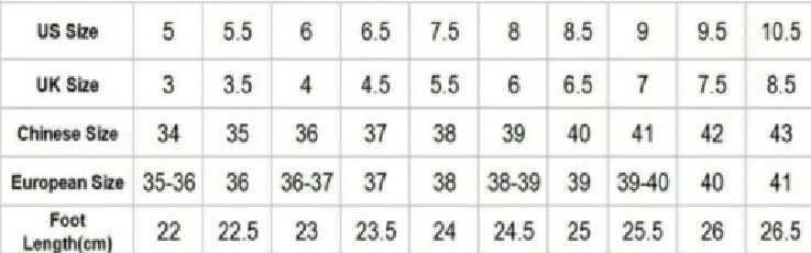 Size: 35-36 inner length 24cm, 37-38 inner length 24.5cm, 39-40 inner length 25cm, 40-41 inner length 25.5cm, 42-43 inner length 26cm, 44-45 inner length 26.5cm
