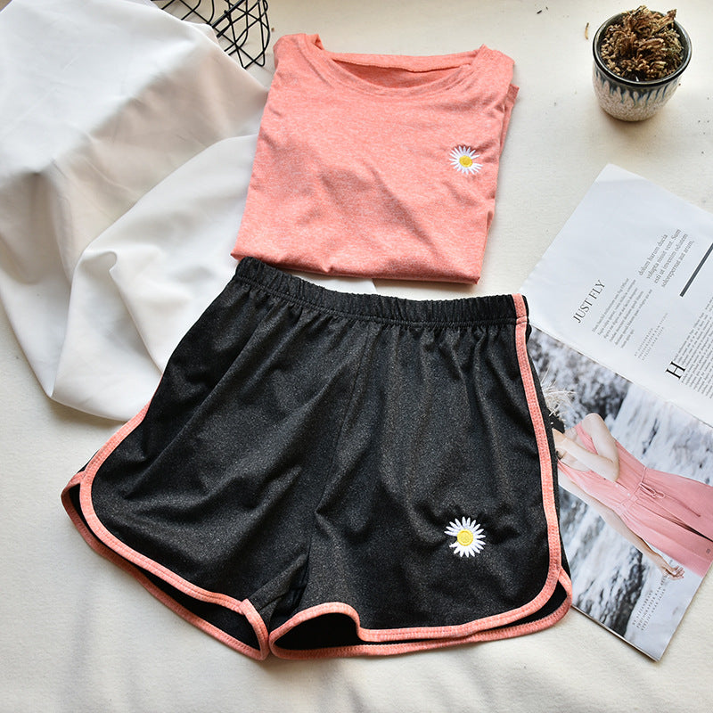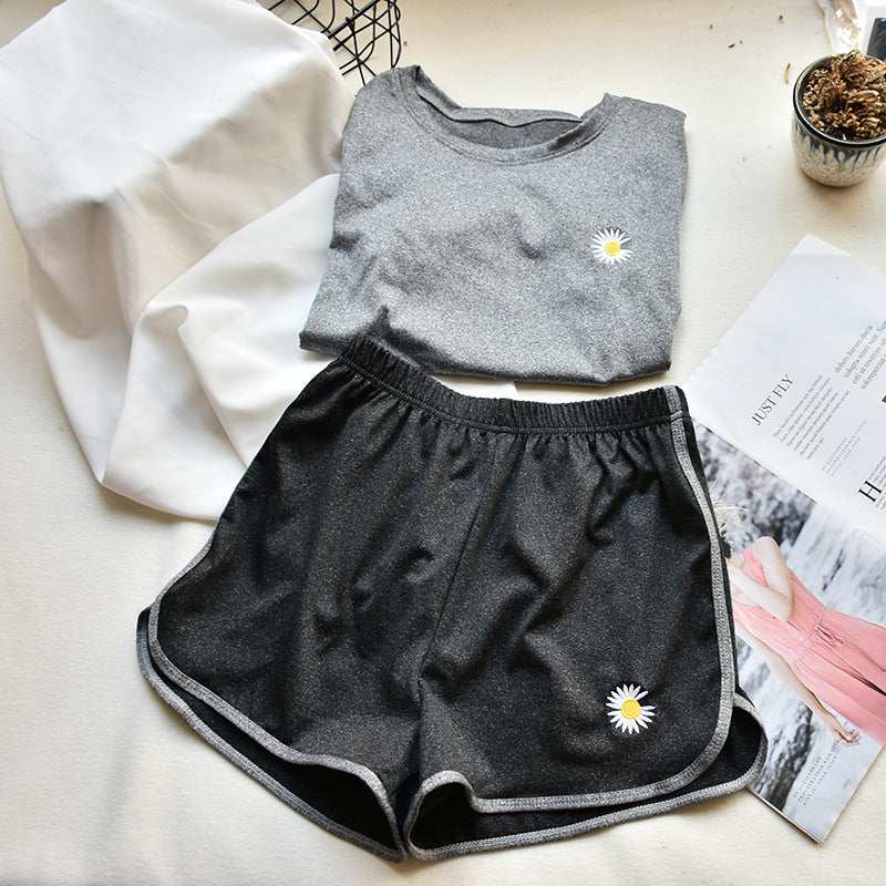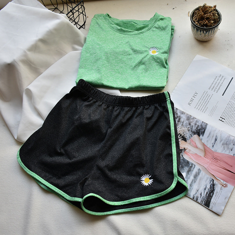 Small daisy sports suit summer women's explosive small daisy T-shirt shorts sports yoga suit