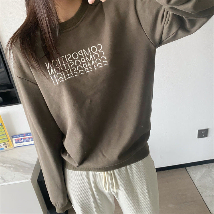 Autumn and winter new embroidery gradual letter sweater female loose jacket F7915