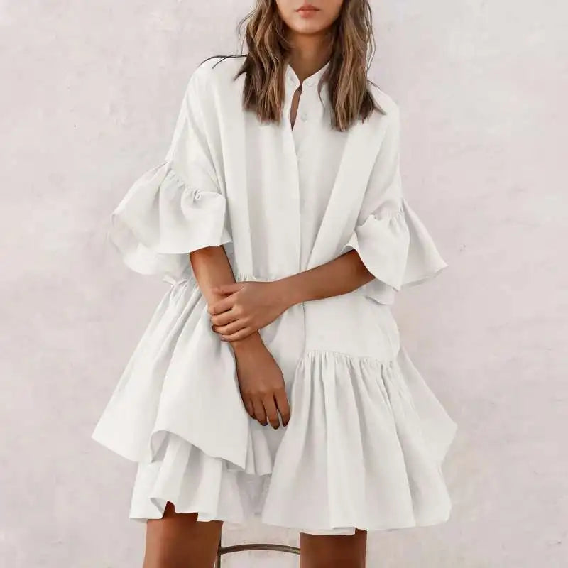 Celmia Bohemian Summer Sundress 2021 Women Ruffled Party Mini Dress Sexy Half Sleeve Buttons Casual Solid Beach Vestidos Robe
