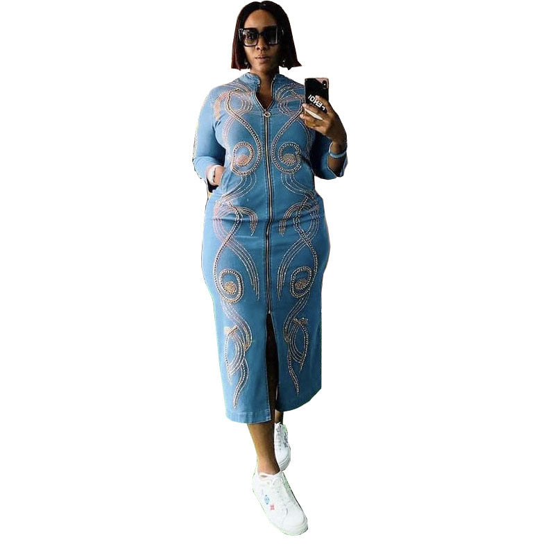 Cross-border source factory direct sales in Africa, Europe and the United States fashion slim stretch denim slim hot diamond beaded long skirt