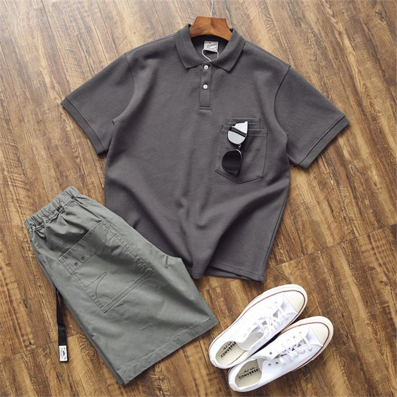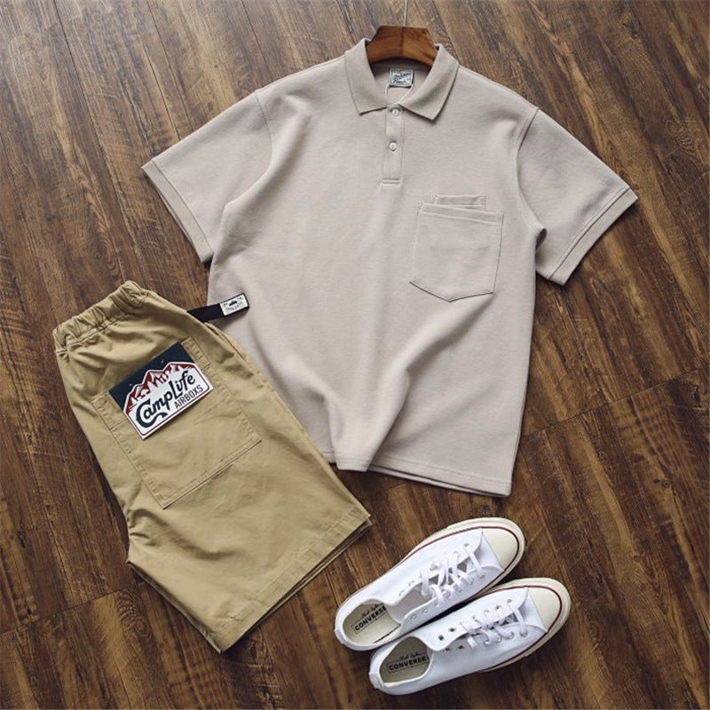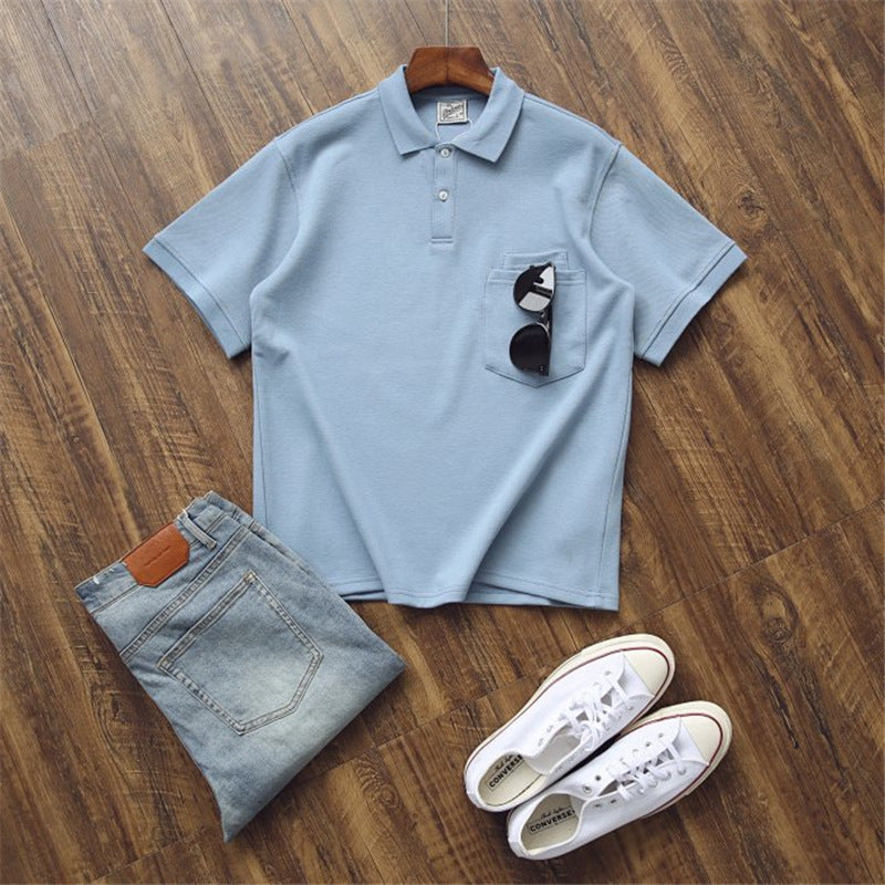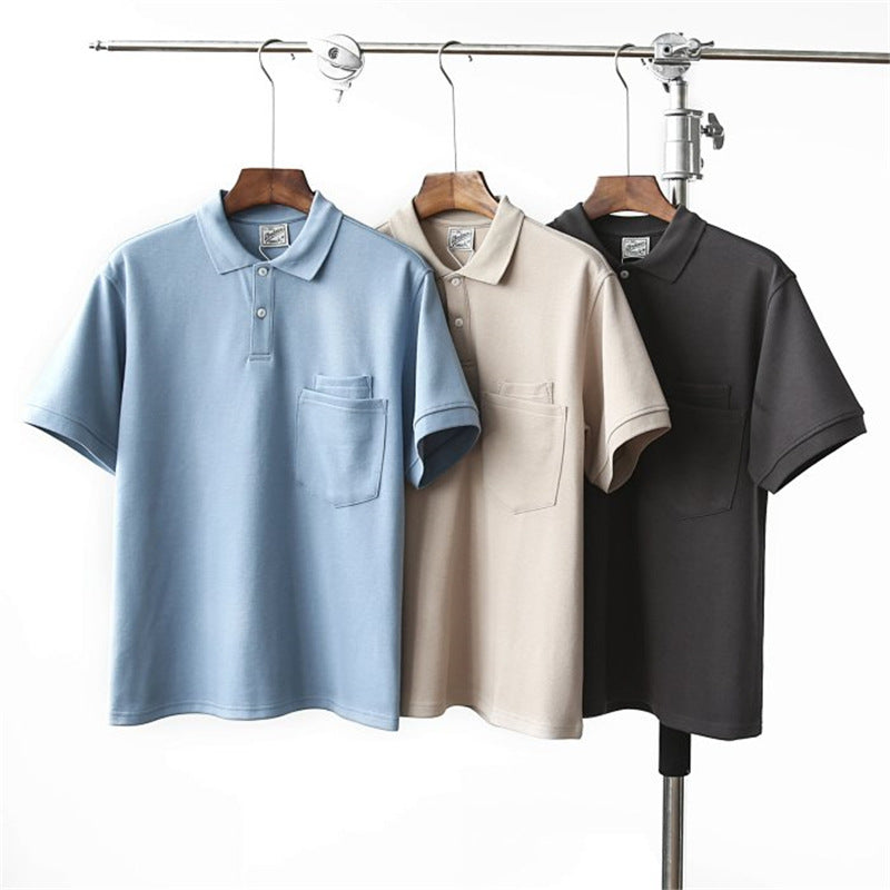 Personal laminated pocket heavy air cotton short sleeve polo shirt American retro short-sleeved T-shirt male